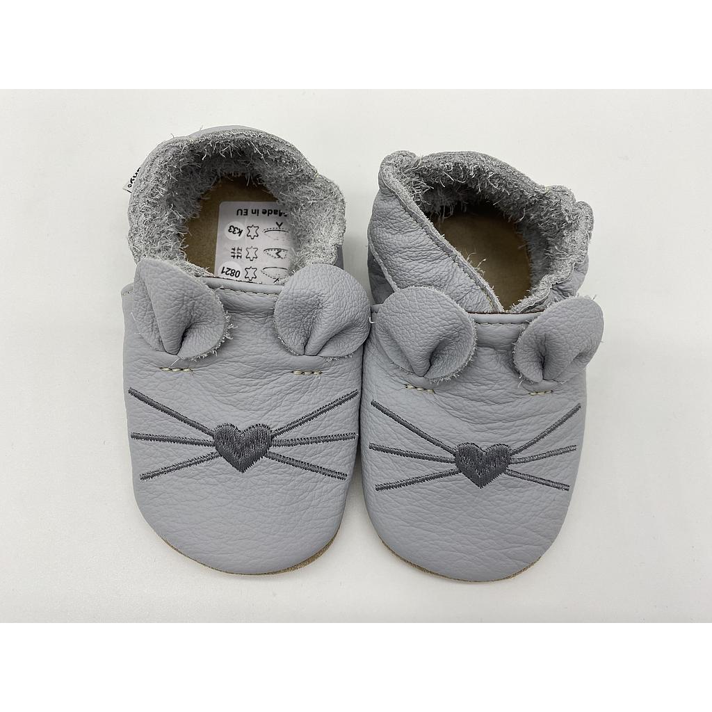 Die Schuhe werden aus besonders weichem, anschmiegsamem Rindsleder in der EU handgefertigt. Sie engen die Kinderfüße nicht ein und kommen dem Barfußlaufen am nächsten, während sie gleichzeitig die Füßchen wärmen und vor äußeren Einflüssen schützen. Ihre flexible Sohle passt sich jeder Bewegung an, sie ist rutschfest und sorgt so für sicheren Halt auf allen Böden. Die Schuhe sind leicht an- und auszuziehen – ein Muss, wenn es im Alltag mal schnell gehen muss – und haben dank ihres geteilten Gummibundes dennoch einen festen Sitz beim Krabbeln, den ersten Schritten und beim Herumflitzen.